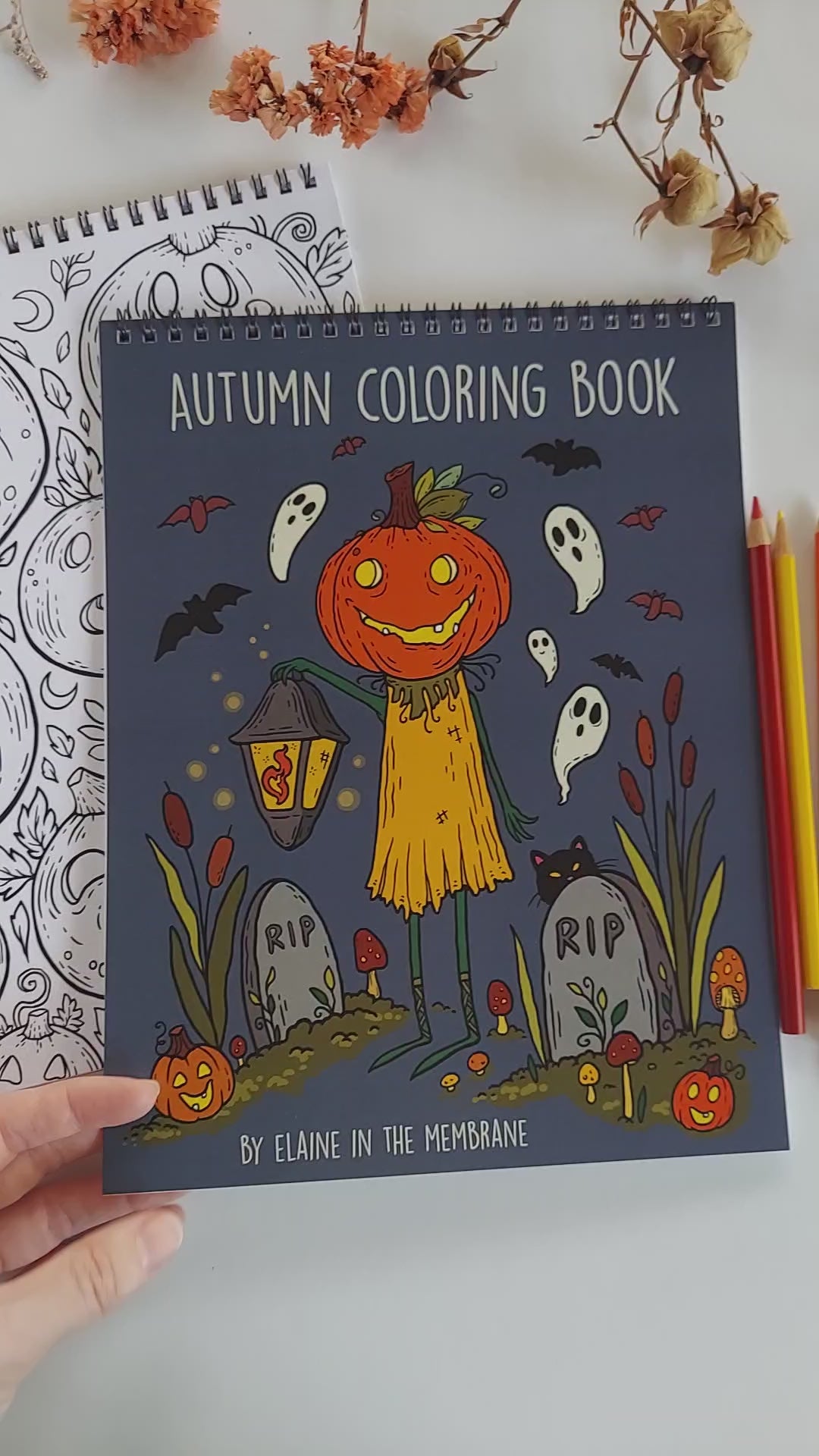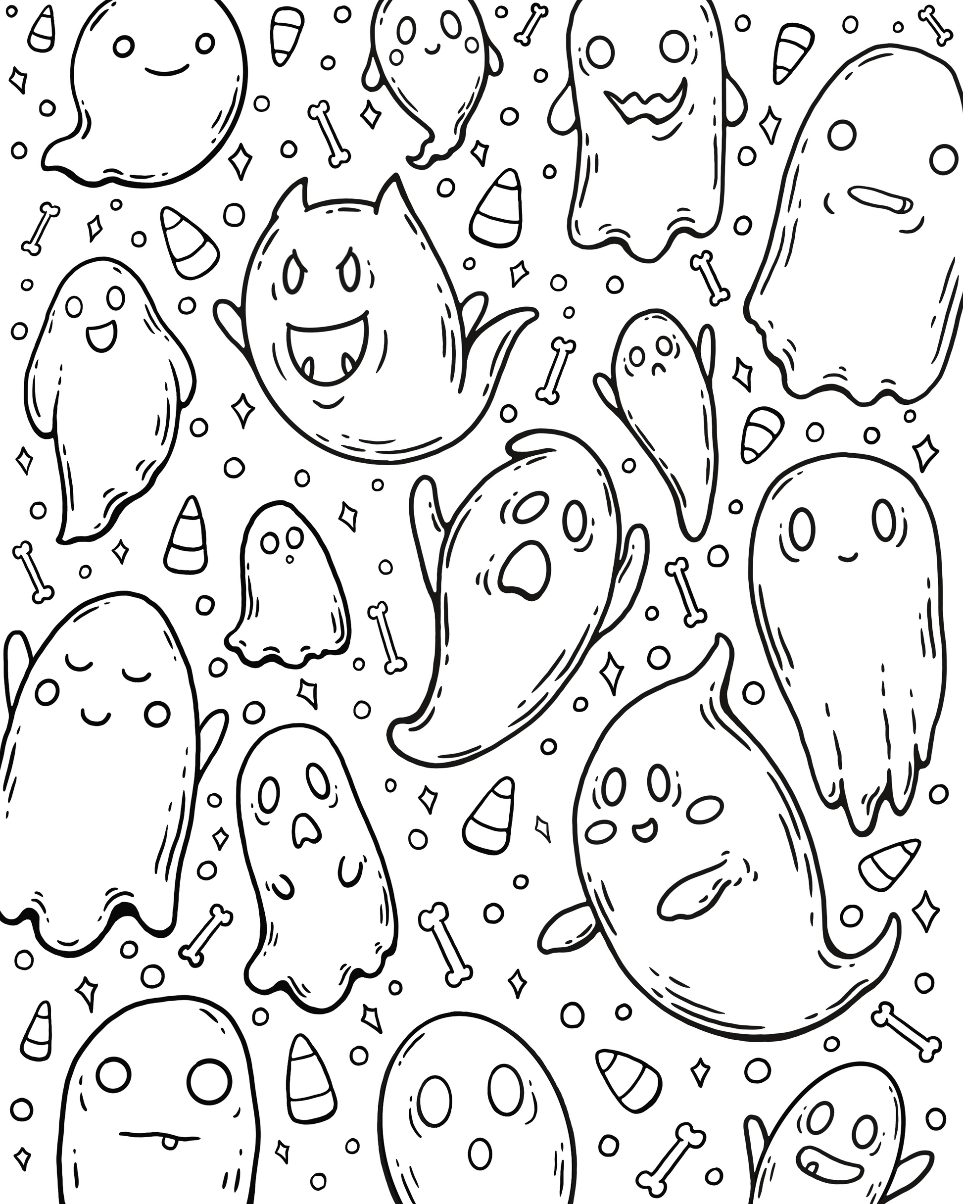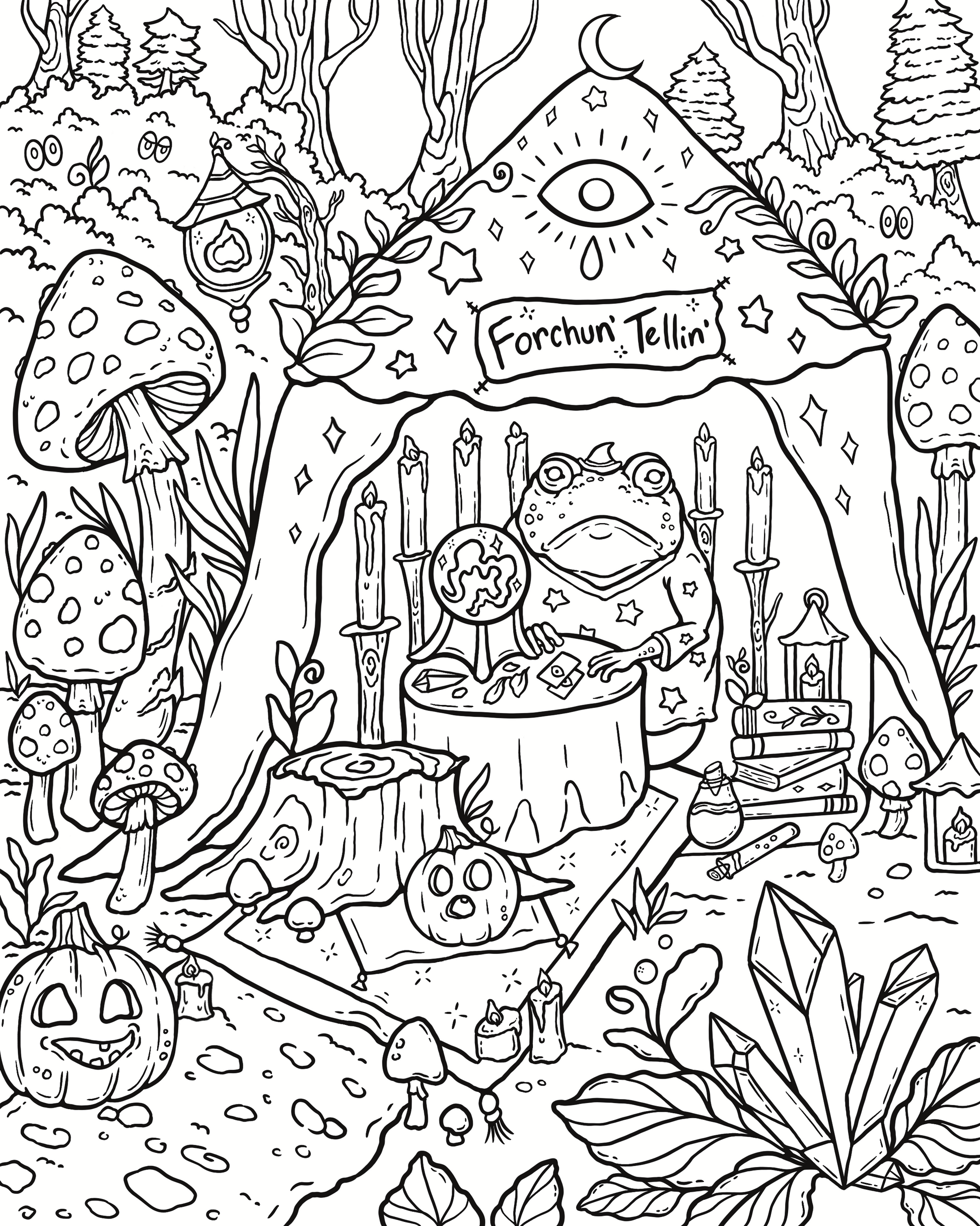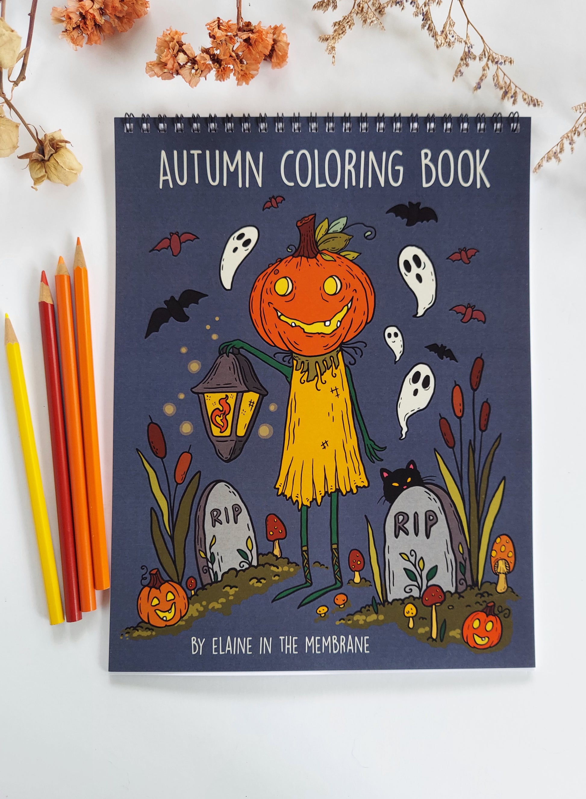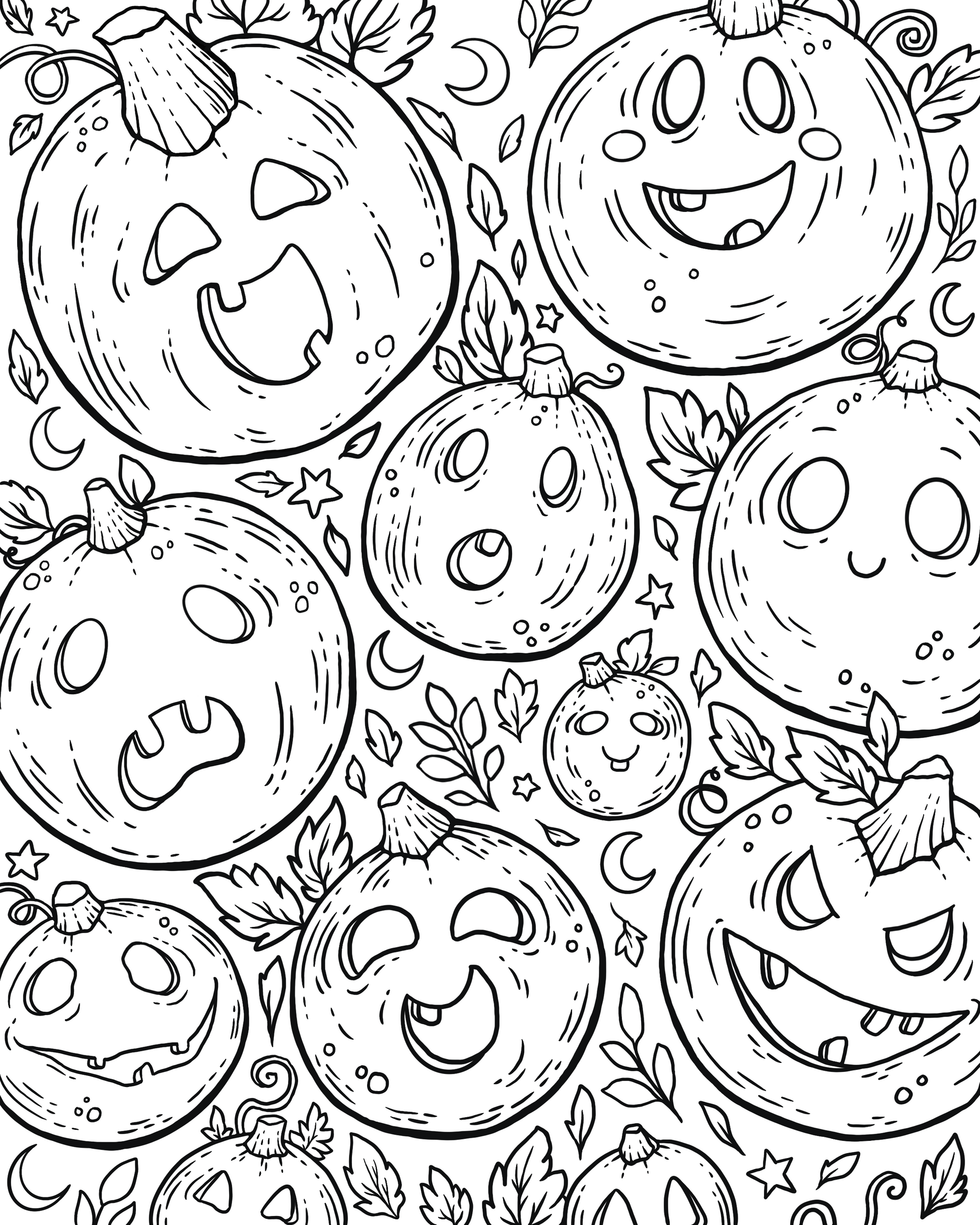 Autumn coloring book featuring 18 hand drawn pages of all things cute, a dash of spooky, and most definitely cozy! These fall inspired illustrations are filled with lots of detail for you to color with any dry medium such as colored pencils, markers, pens, and more.